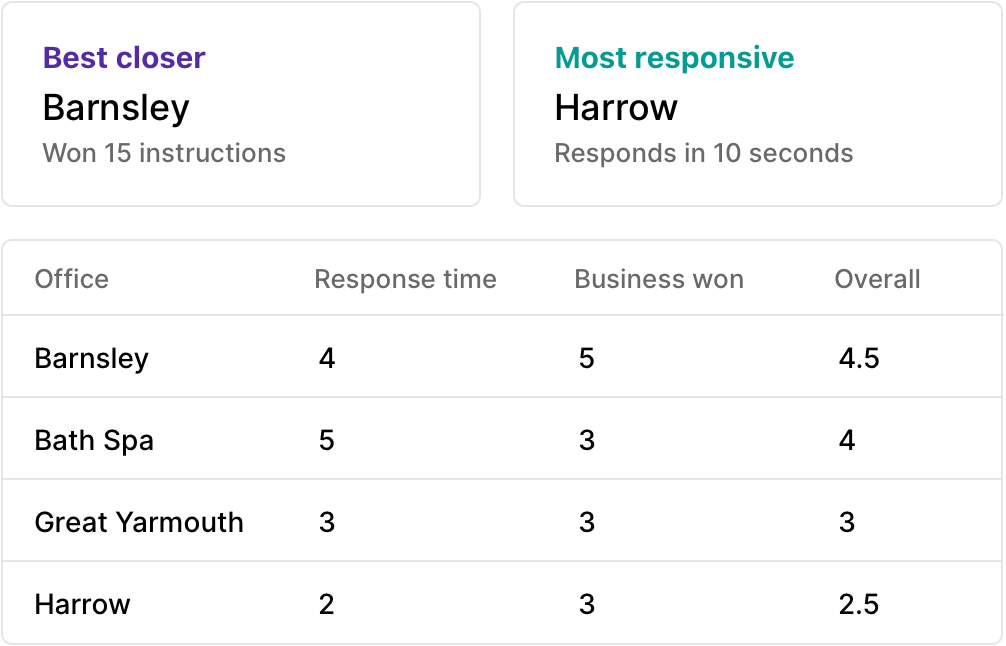 See which team members and branches respond fastest and convert best
